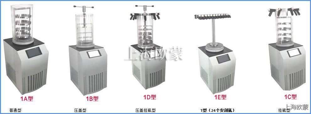 冷凍干燥機(jī)規(guī)格:FD-1A-50普通型、FD-1B-50壓蓋型、FD-1C-50多歧管普通型、FD-1D-50多歧管壓蓋型、FD-1E-50 T 型架